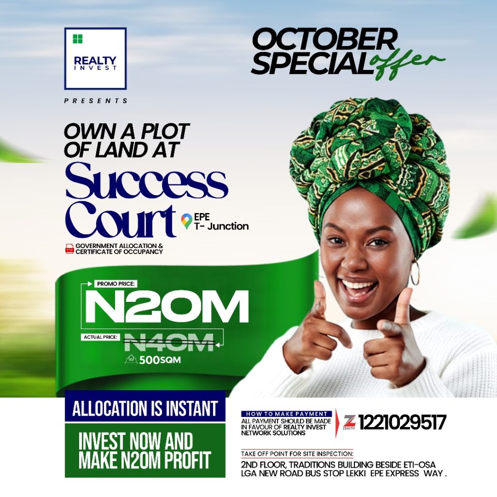 OWN A PLOT OF LAND AT SUCCESS COURT, EPE